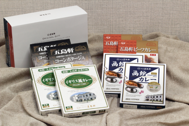 伝統のイギリス風カレーとコーンポタージュにすっきりした辛さのビーフカレーを詰め合わせました。